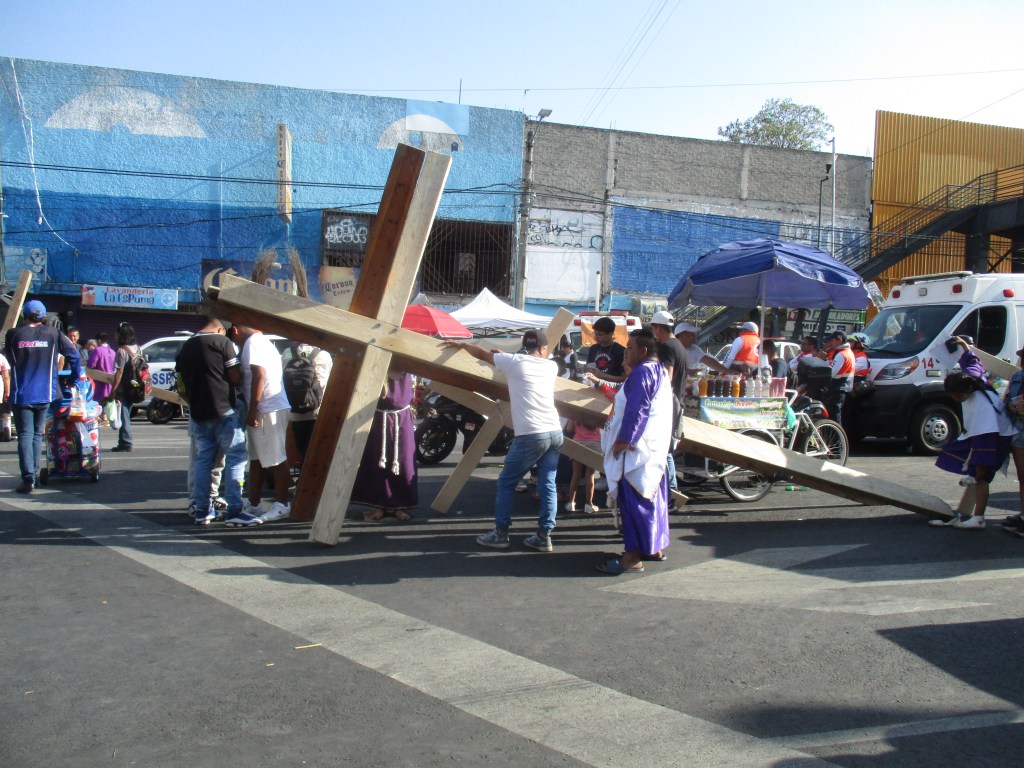 Tres de la tarde para un viernes decidido a darnos su calor. Tres de la tarde que avanzaban en los relojes mientras Jesús, que en realidad se llama David y entrenó durante seis meses, está siendo crucificado en el Cerro de la Estrella, muchas, miles de personas están ahí, bajo la intensa y dominante mirada del astro supremo. No pude llegar hasta el Cerro. Me perdí entre las callejuelas de Iztapalapa, quería, al menos, saber qué se vivía por ahí, en Iztapalapa, en donde desde hace ciento ochenta años una tradición católica les une en comunidad y conmueve la economía, las costumbres, de lxs habitantes de la Alcaldía Iztapalapa.