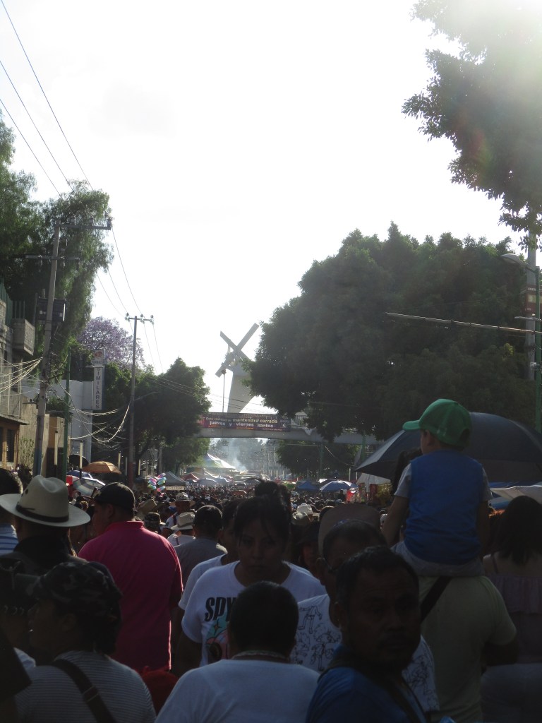 Salgo de la catedral, hambriento, peregrinxs en caravana feliz y calurosa tambalean entre las calles de los barrios y colonias. La miro otra vez y desaparece en la multitud, quizá no era, quizá no. Sólo queda la diversión, los juegos, atinarle a los globos, llevarse una alcancía de colores fluorescentes, comer brochetas asadas de res, de camarones, dorilocos, tacos de guisado, quesadillas, hamburguesas dos por sesenta, comprar alguna artesanía, pan de pueblo, le dicen, queda divertirse, pasarla bien y recordar al nazareno.
