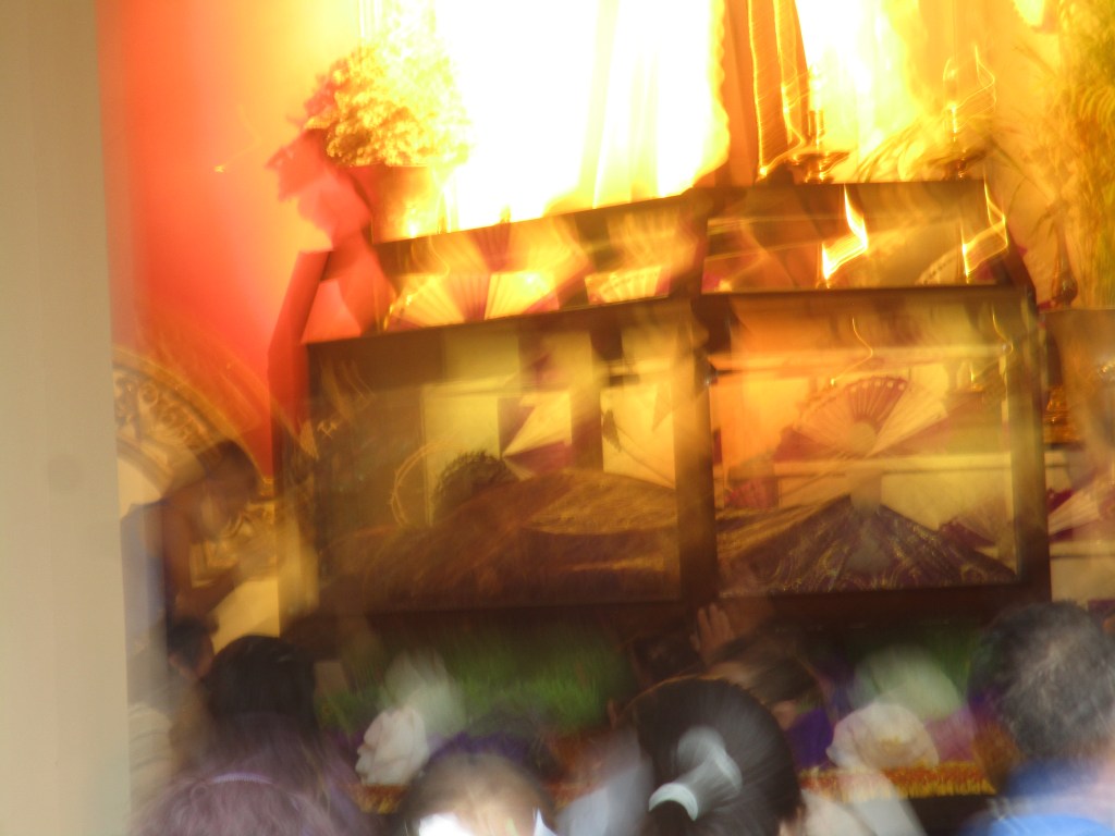 Mi rumbo incoherente me lleva a la Catedral de Iztapalapa, la gente anda cansada, con vasos grandes escarchados, botellas de agua, algunas flores, andan hasta llegar a la entrada del Santuario en donde hay una fila para acercarse a la urna en donde se guarda al santo, el imán de esta celebración; arriba, en las paredes, los frescos cuentan el vía crucis, la luz del supremo ilumina los vitrales, la iglesia es una fiesta de colores, las personas se acercan y dejan su mano en el vidrio al mismo tiempo que piensan, piensan y el silencio de los pensamientos me hipnotiza, tanto, que la veo una vez más, se atraviesa ante mí y desaparece, entre los rezos, entre mi maldita necedad, se aparece y me confieso inútil ante la vida, inmóvil ante las culpas que estxs individuxs vienen a dejar en estas paredes, me renuncio fatal, me anuncio miserable de mi vida, de mis actos, me deposito en mí todo la responsabilidad del sufrimiento. Choco con un hombre y me odia, con la mirada, con la palabra, me odia y sonrío, el hombre me odia, sigo mi camino.