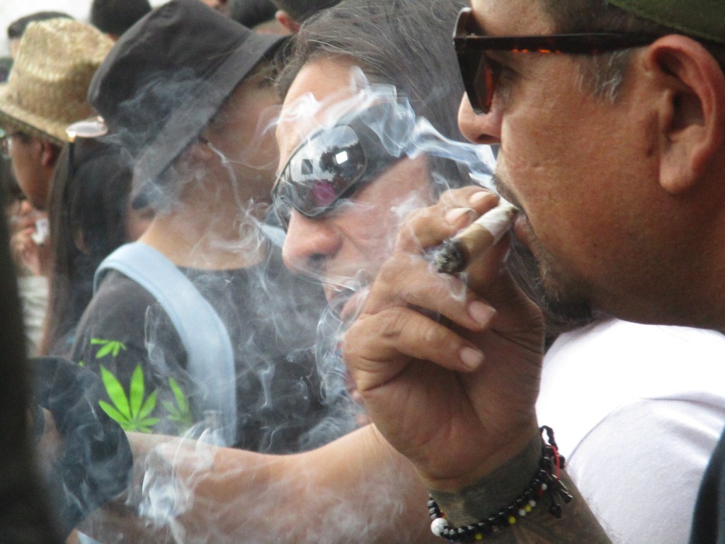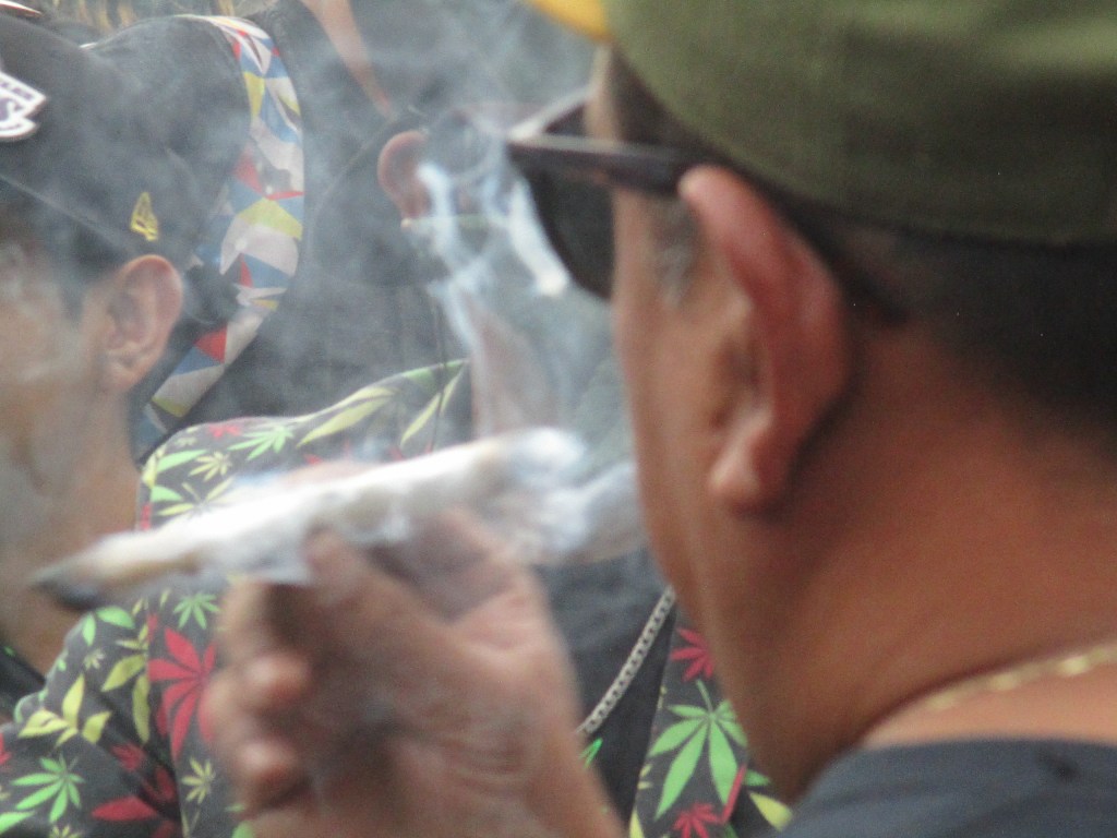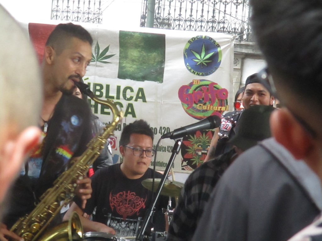 La bocina rebotando y los poseídos frente a ella bailando, brincoteando, delirando el cuerpo hasta la endemoniada sensación de estar vivo, el metrobús detrás, lxs viajerxs observando el desmán, el festejo, la nocturna sensación de no tener que estar rogando nada, simplemente dejándose ir en el centro de la Ciudad de México, mi carnalite, entre edificios de antaño tamaño no es regaño, la Historia en nuestras narices, debajo de nuestros píes que aguantan y aguantan, el dub cada vez más recio, la luna obviedad de obviedades, atizada, pasoneada, llegó para regalar besos, mientras tanto la banda se daba unos jochos, unos doritos, un agua, el chesco pa la seca y el tremendo monchies ¿munchies dijeron?, que salen la gomitas, el pastelito, el brauni, ay no, qué calamidad, qué entronque mental, el dub, las cumbias, el punki, las sirenas de las patrullas, el olor a combustible, la Ciudad creciendo, ganando carriles de avenida Reforma e Hidalgo, la Ciudad, sus trabajadorxs, que también somxs lxs que estamos aquí, pachequeando, bailando, un día, un día todxs, en conjunto, pa’ reconocernos, otra vez, pa’ ver qué hacemos, porque que no se nos olvide que hubo una marcha, pero bueno decidimos estar acá, en la vidorra, en el encuentro, el pasto verde, yo quiero fumar mota, vivir, estar en onda pachecorra, psss, qué te digo, nos siguen atorando, sigue siendo dos dos torcido armar, fumarla nomás en tu jaus o en la del chido que se ponga amable, en las calles en donde psss la tira nomás se hace de la vista fat, pero psss, acá estamos, rola el gallo, tsssssssssssssssssssssss… fffffffffffffffffffffffffff… issssssssssssssssssssssssss… bbbbbbbvvvvvffffffffffffffffff… isssssssssssssss, ffffffffffbbbbbbbvvvvvvvvvvvvvvv… che dragonsote, cambiará, cambia la onda, autocultivo, cofishops, regulación, legalegalización, algo, algo debe pasar, por algo estamos acá, algo medio conscientes, te traigo entre ojos y los traigo rojos, algo pasará, hagamos lo que nos toca, ¿qué nos toca?, y que tire humo en la trampa, se me destrampa, y que somos parte de la violencia del país por andar atizando, por andar de pinches mariwanxs, pues en una de esas sí, la maña apaña, pero igual y no, la neta no, esos conflictos tienen alcances mayores, intereses más grandotes y nosotros aquí pidiendo encendedor prestado, comunícame tu ardor, que suenen las políticas públicas, que suene nuestra charla viva, crítica, inteligente, pandilla ganyera.