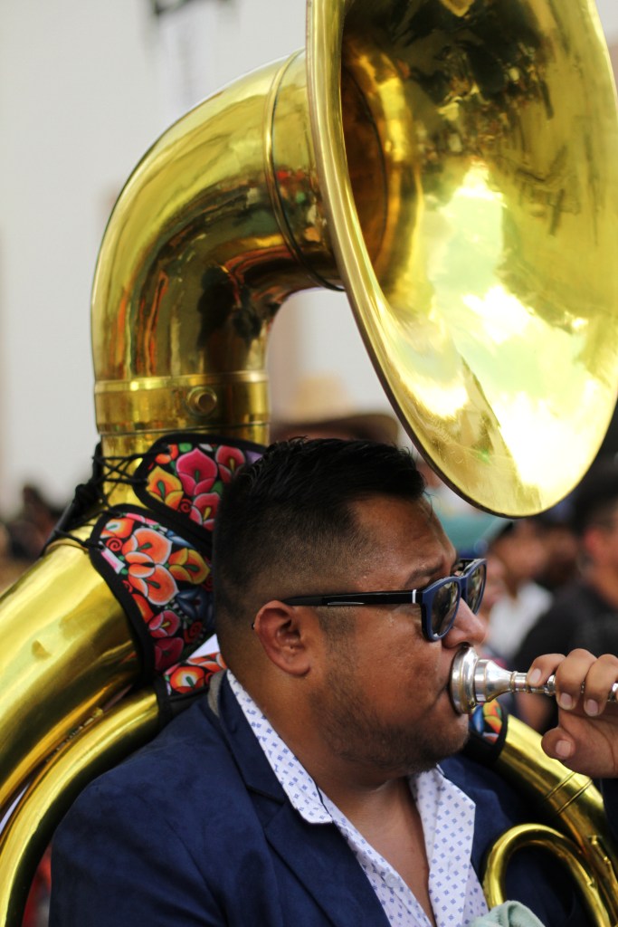 Te atrapa. Lo que sigue es de escándalo. De risa loca, de verdad loca. Las nubes de lo más traviesas. Caminar y caminar sobre el suelo empedrado, sobre el sueño de Ciudad. El agua del agave inunda las ideas, las trastorna hasta convertirte en un mal recuerdo, un monstruo de las cuatro de la tarde. Aparecen las figuras danzantes, la falsedad hecha de papel y varas de bambú. Danzan las mujeres y los hombres sobre sus patas de palo la música de los pulmones, las notas de las trompetas, de la tuba, el trombón y la tarola, cuando suena el platillo intento salir de mi distracción, no lo logro. Te atrapa la fiesta, los gritos, el baile, te atrapas en tus melancolías y buscas azotarlas en las paredes verdes de estos edificios antiguos, te atrapas, te atrapa el desmán, te atrapa y te vas perdido de ti, evadiéndote, extraviado en tus dolores. Te atrapa y te vas.