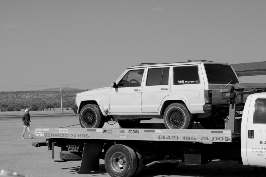 Inmóvil ante la velocidad del paisaje, ante los prados secos, los montes verdosos, inmóvil ante la encrucijada mental y suena cuando nadie te quiera, cuando todos te olviden, volverás al camino donde yo me quedé, interpretada por Amalia Mendoza, en las bocinas y emitida por una señal distorsionada de radio de amplitud modulada. Calma en las nubes, satisfechas de lo que provocan, de aquello que invocan. La carretera no tendrá fin hasta que las estrellas le den las trés de humo al astro para que se le hagan los ojitos chiquitos y le invada la hueva rica. La máquina avanza ante la vida extraña, las vidas lejanas, la radio capta otra señal y suena, entre rumores de electricidad: si así es como querés, yo me iré, muy muy lejos, si así es como lo ves,solamente te pido algo… El viento tibio se lleva recuerdos y sabores, el aroma de la tierra seca invade el auto que avanza, avanzará.