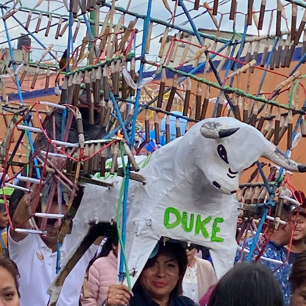 Entre los callejones de Santiago Zapotitlán nos resguardamos mientras los toritos y sus seguidores caminaban por la calle, la bandona soplaba trompetas, tubas, clarinetes, hacía retumbar el bombo y el platillo, las cervezas se bebían frías, el tequila con refresco de toronja. Los toritos de distintos tamaños, avisando del peligro, esperado la noche para satisfacer el rencor con la pirotecnia, la gente caminaba y no terminaba la gran marcha de los animales explosivos. Bebimos cerveza, observamos el paso de los más pequeños, después, los más grandes, luego, las personas, la entraña del toro, el calor de la tradición. Caminaron hasta la plaza principal, la música les seguía, era el último domingo de la fiesta, las personas afuera de sus casas, brindando, charlando, otros, traviesos, dejando un aroma a orín en las callejuelas más inocentes; un alguien, entre la multitud, me cuenta que primero se truenan los toritos chicos, después, cuando esta más oscuro, advierten que no lleven niños, que vas bajo tu responsabilidad, los toros mas grandes amenazan en la plaza. Las y los mayordomos disfrutan el instante, bailan felices, platican, gritan, la vida en una plazuela, la vida, la fiesta, la tradición en un domingo indescifrable.