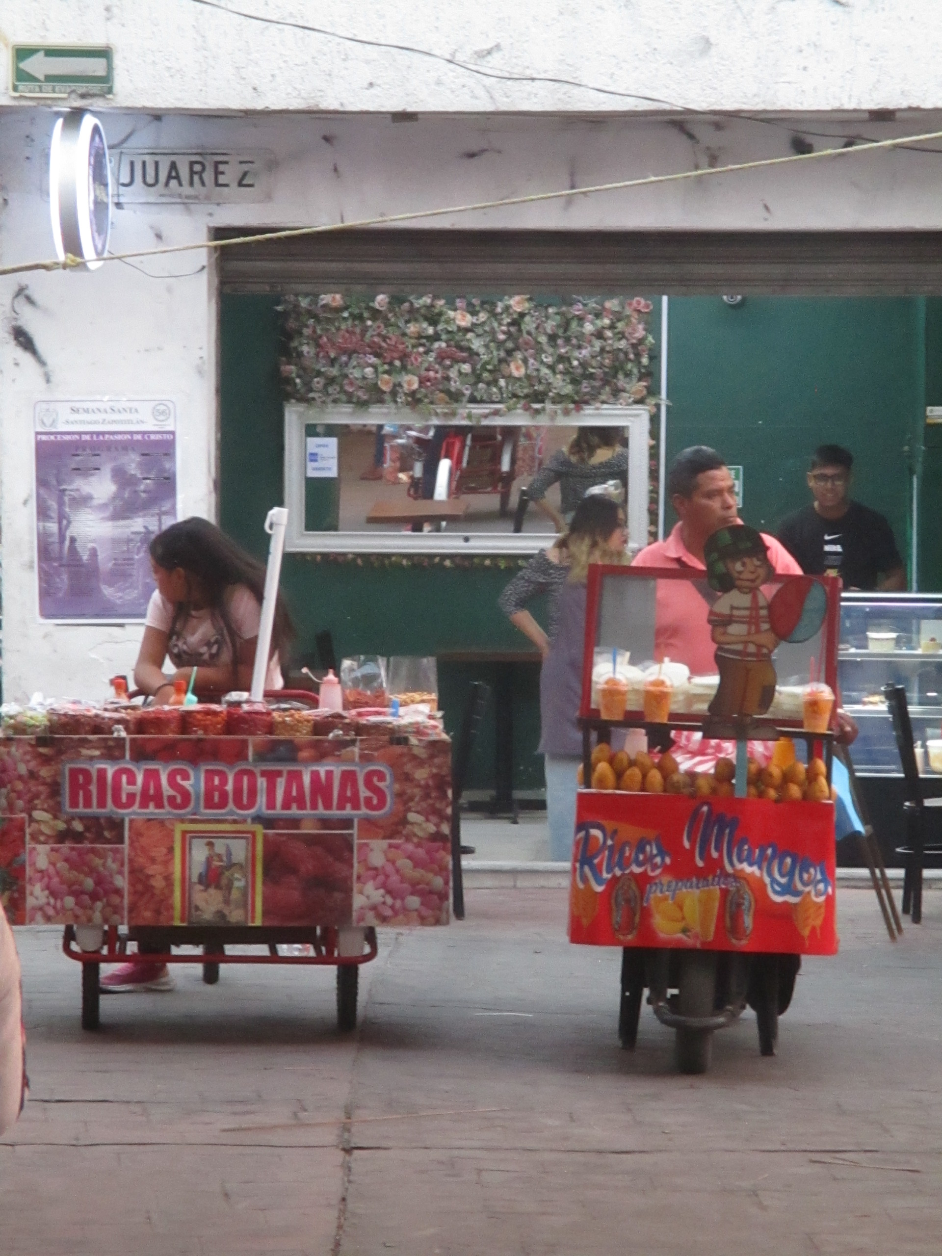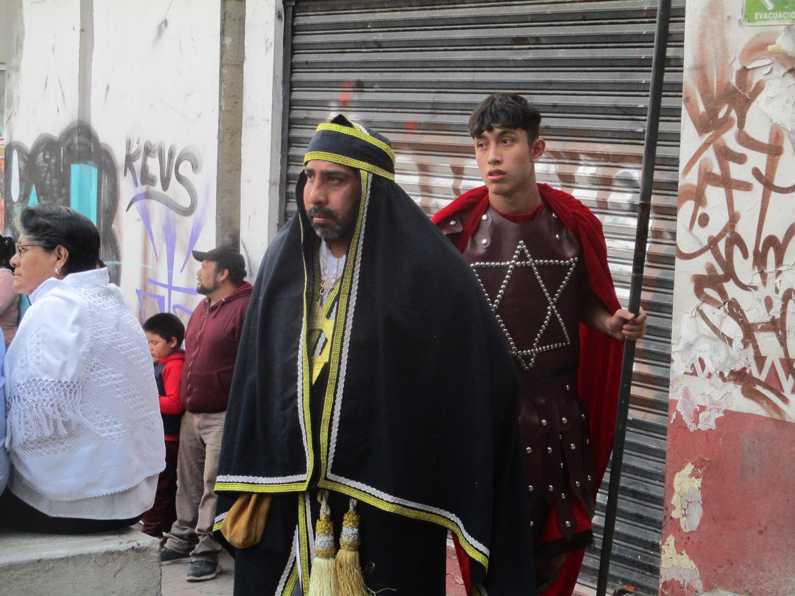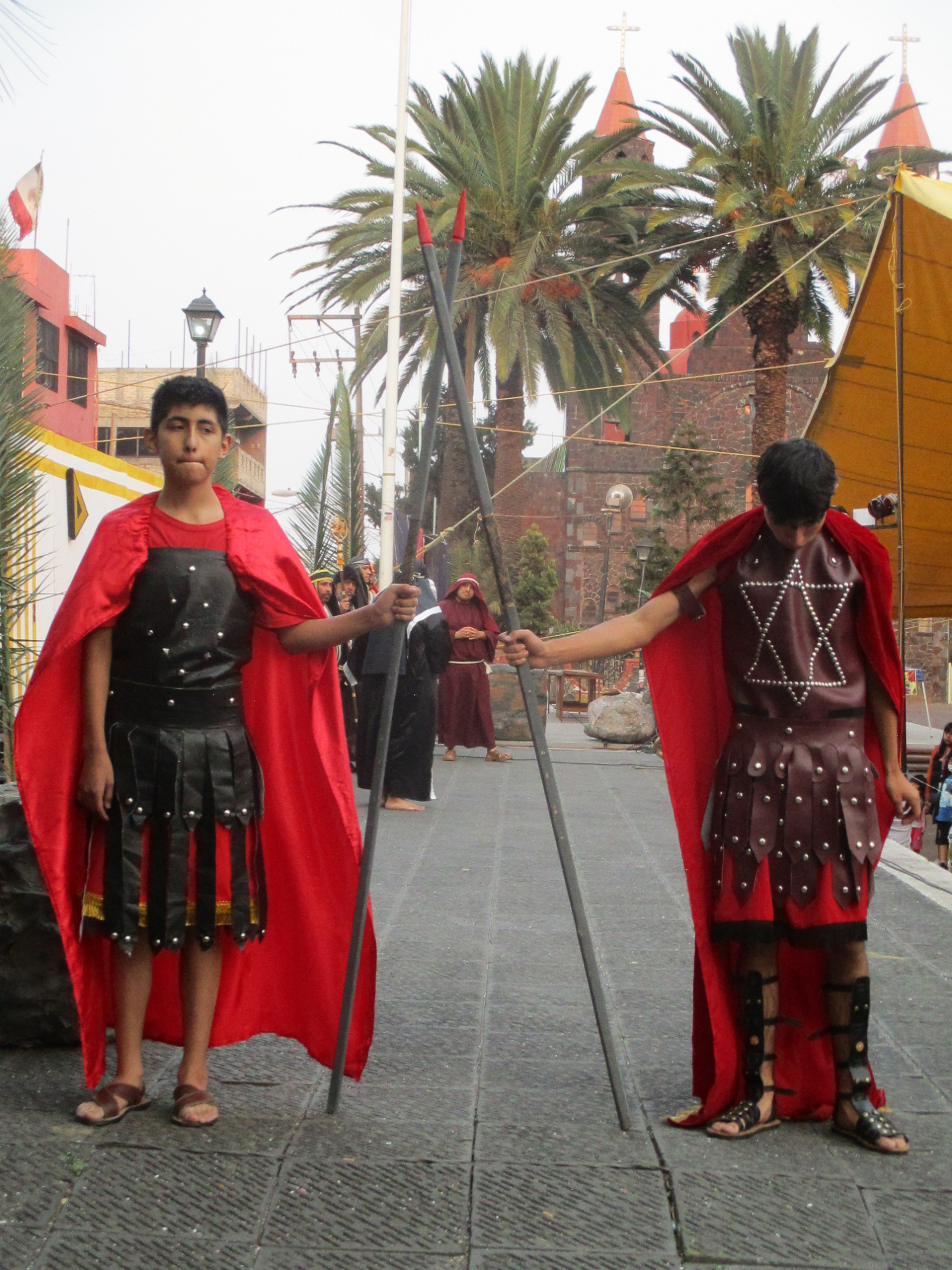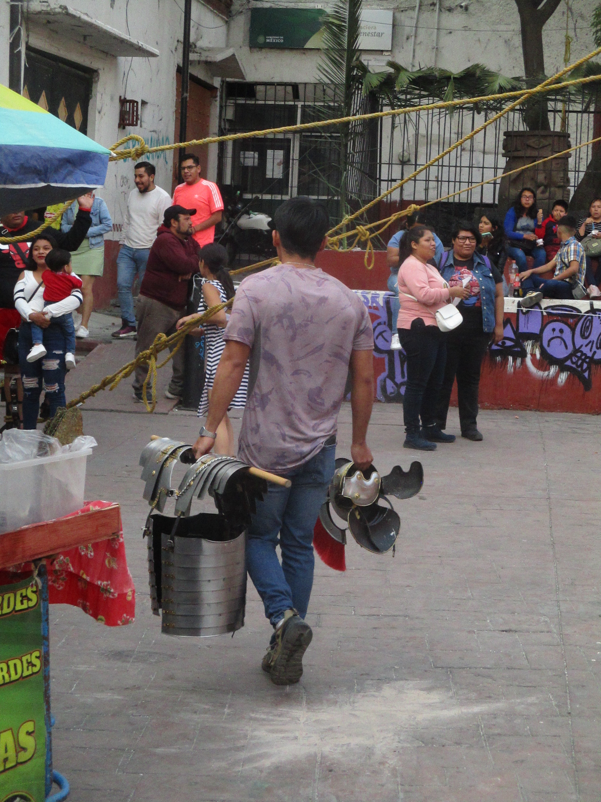 Debajo del árbol de inmaduros duraznos el grupo de personas católicas se preparan y se dan ánimos para la representación del viacrucis en la Plaza Juárez, de Santiago Zapotitlán, en Tlahuac. Los niños y las niñas juegan con las pelotas de plástico, con los juguetes que crean burbujas brillantes y momentáneas. Mujeres, hombres, caminan ante el sol que de a poco se esconde en un jueves en donde un hombre está por ser traicionado. En la iglesia las señoras regalaban manzanilla, pan, vendían veladoras para calmar ciertas culpas, ciertos dolores. Adentro, en el atrio, de rodillas, niñas, niños, mujeres, celebraban la misa, leían frente al micrófono algunos pasajes de la biblia.