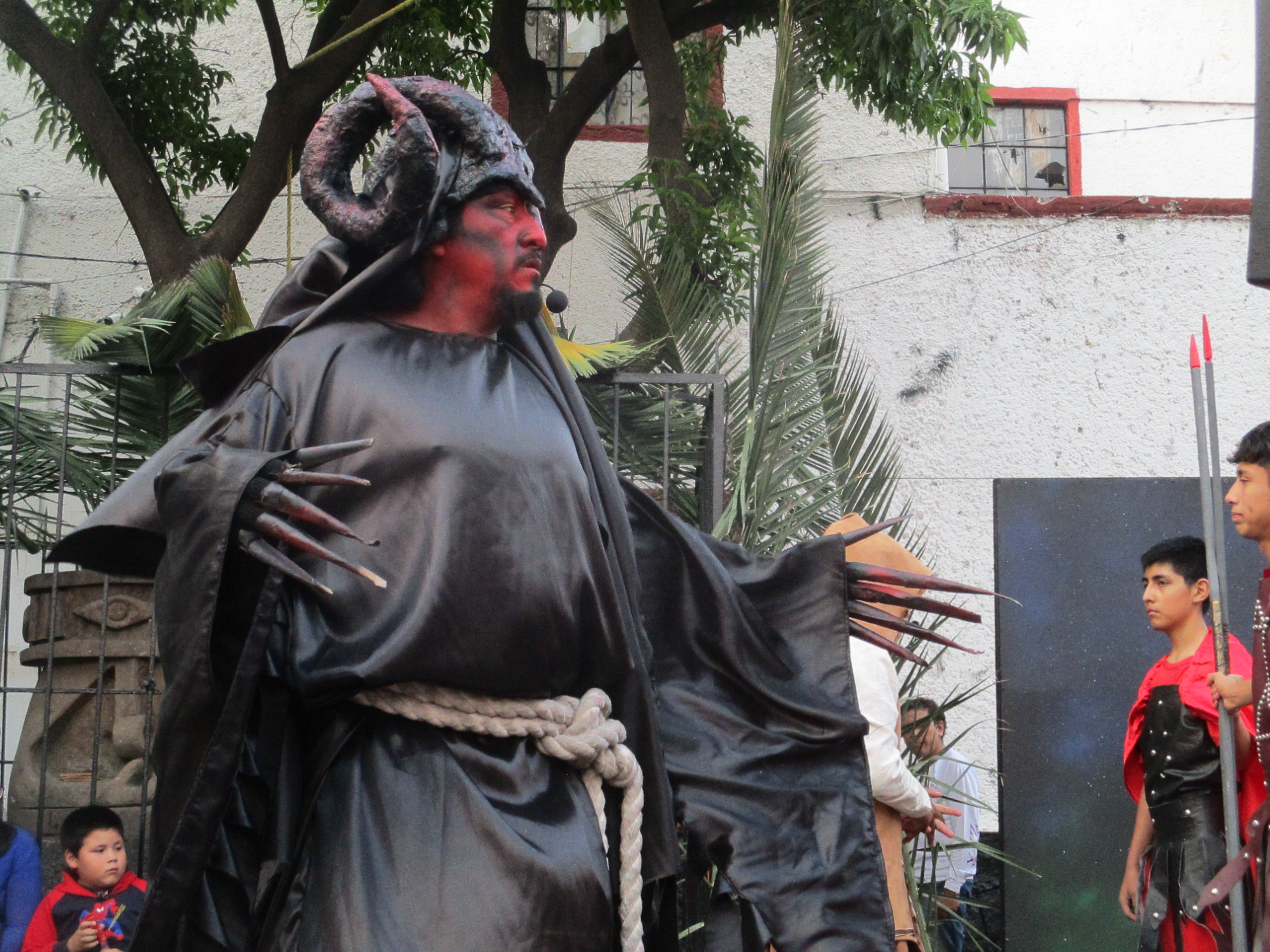 Un diablo entre la gente, uno alto, corpulento, de gesto gruñón, acaso incomprensible, un personaje de extraña vibra, de intensa presencia, un diablo detrás de aquél que busca monedas, que tiene información, que sabe algo, que vende algo, que vende a alguien. Un diablo que espera, que habla y su voz reverbera en las bocinas, se queda en los oídos de las niñas, los niños, las señoras, los abuelos, las abuelas, los policías, las señoras de la michoacana, el don de los juguetes, la doñita de los globos, el señor de los elotes, de los dorilocos. Loco el momento, el diablo detrás del joven actor, los demás, los de barba, los adultos y ancianos gritando, preparando su rencor, su pretendida salvación. El diablo se pierde entre las personas; en la lejanía el rechinar del metro anunciaba momentos de confesión. Las nubes no apresuraban su pomposo andar.