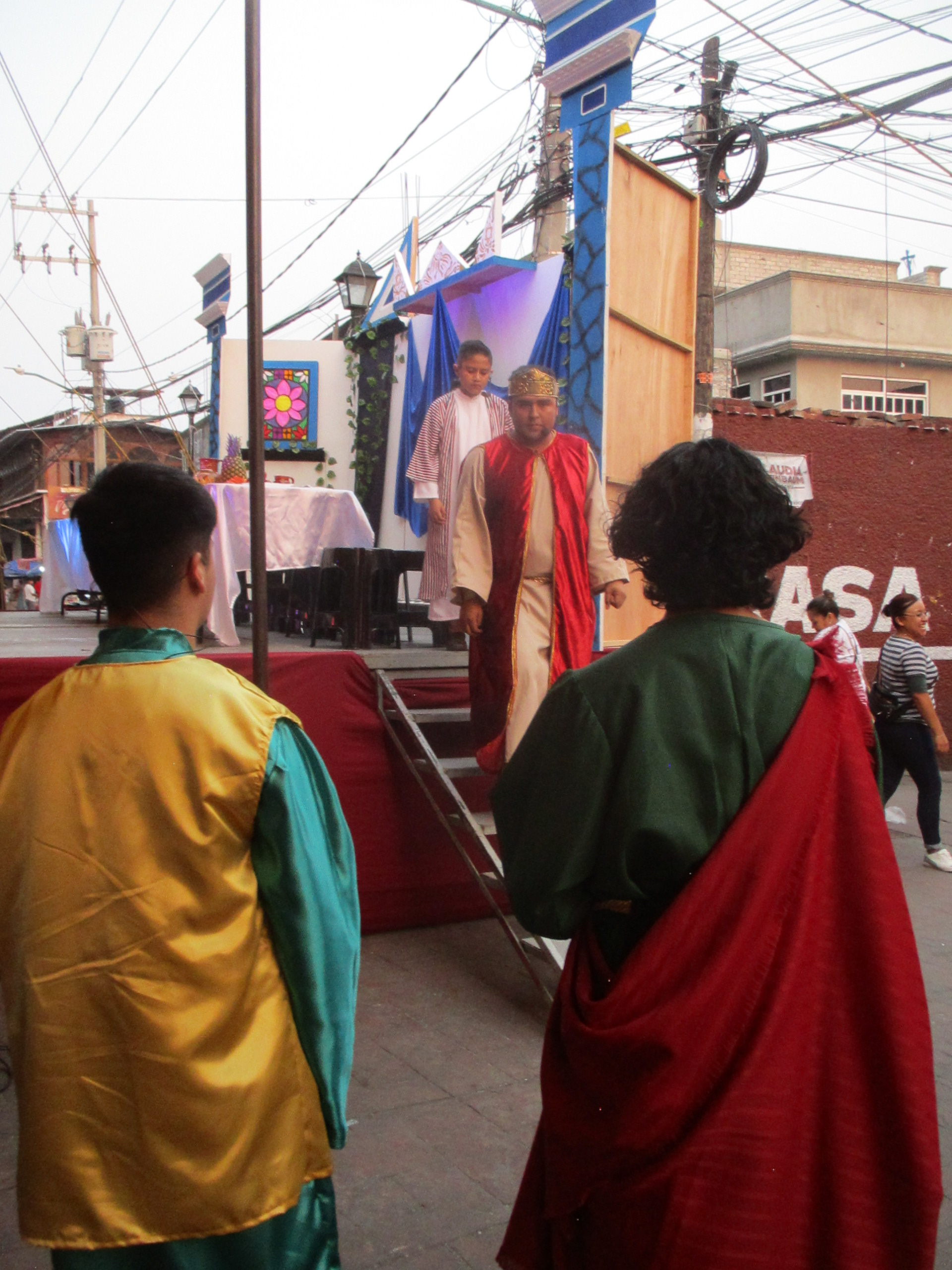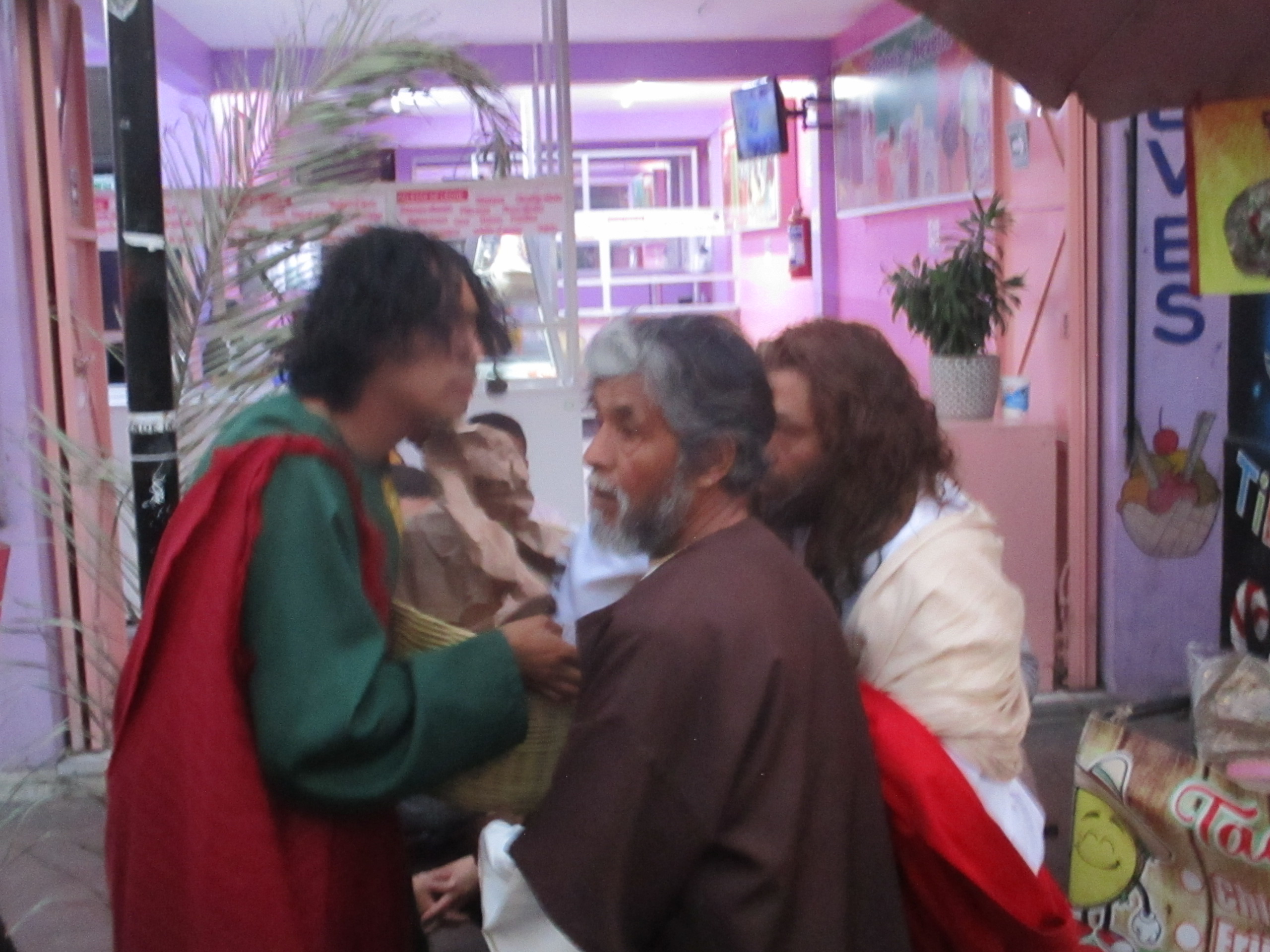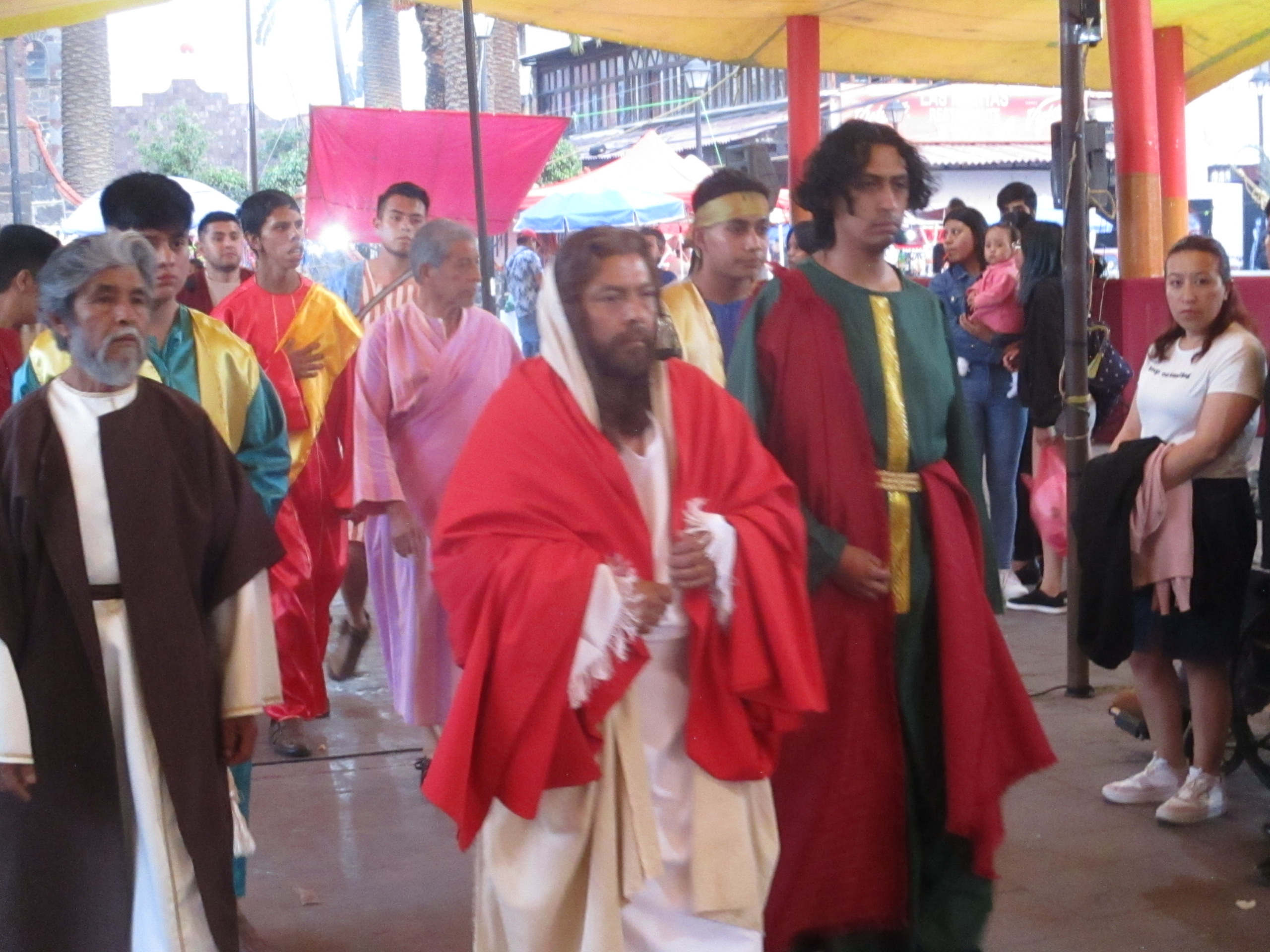 Aquél que recibió las monedas a cambio del hombre, el jovencito, el actor, experimentó una pena enorme, un dolor inmenso, se tomó la cabeza intentando sacudir los malos pensamientos, las zonas oscuras de la mente, se levantó de la mesa mientras los demás comían en calma; el que recibió las monedas bajó del escenario, corrió entre la gente, con vergüenza, con rabia, corrió hacia la iglesia, se la cayó algo, regresó, se agachó y lo tomó, no vi qué fue, las personas grababan el momento, transmitían en vivo, el evento atrapaba cualquier atención en el lugar, debajo de las carpas; después, el actor, atravesó el atrio de la iglesia cuando la tarde estaba en los azules más anaranjados, cuando el cielo parecía estar presintiendo una profunda tristeza, una de canción ranchera, de cerveza en la banqueta, tostadas de pata con salsa re picante, refresco de limón. El cielo en su arrepentimiento y el hombre esperando, esperando lo peor, lo que muchos ya presentían, esperando la sangre, el castigo, el martirio, la culpa, la burla, mientras tanto, el hombre allá, en la mesa, comiendo, platicando, recitando los versículos y parlamentos que revivían los episodios de un personaje que al final, antes de resucitar, fue asesinado en una cruz.