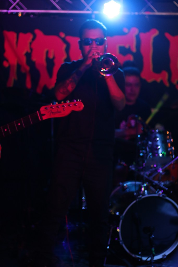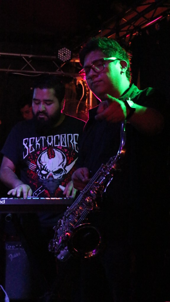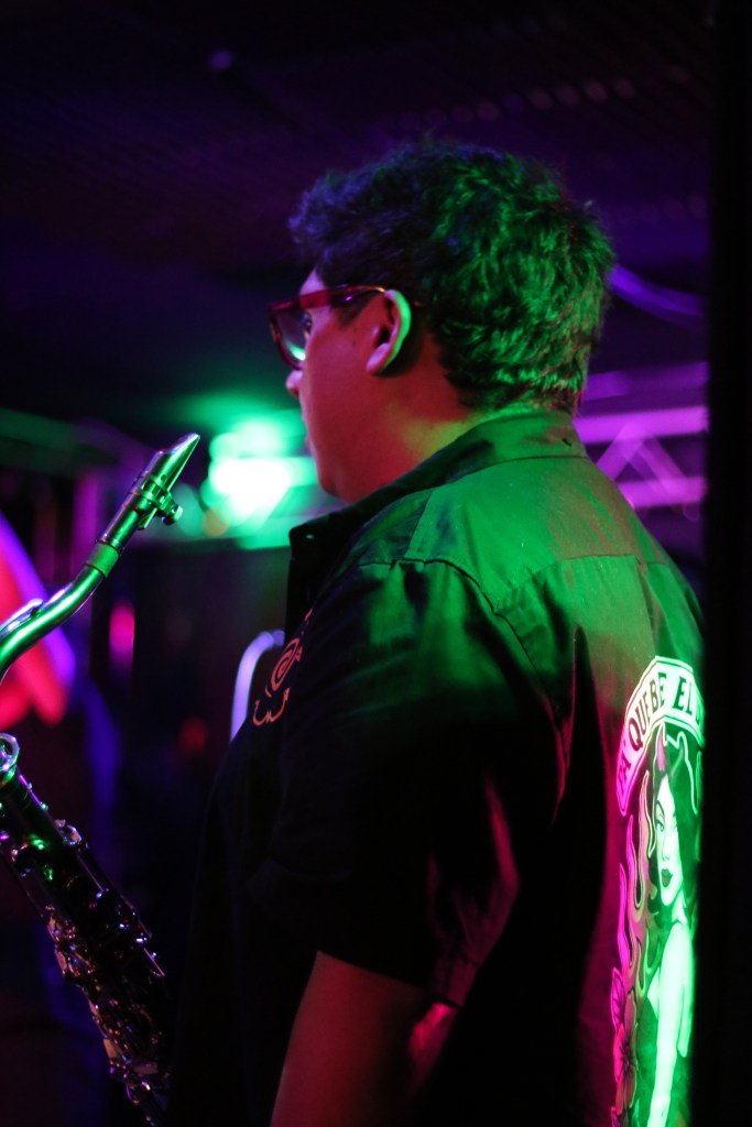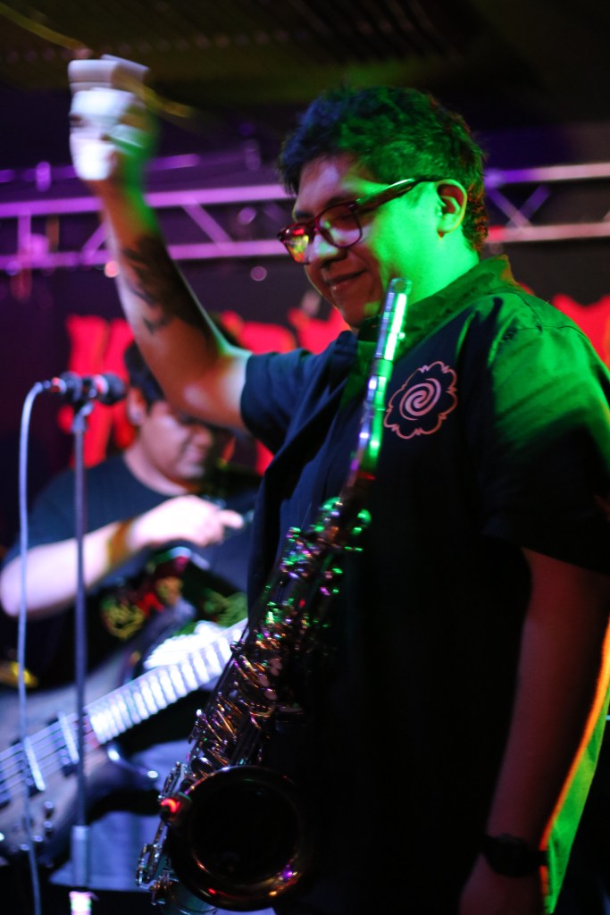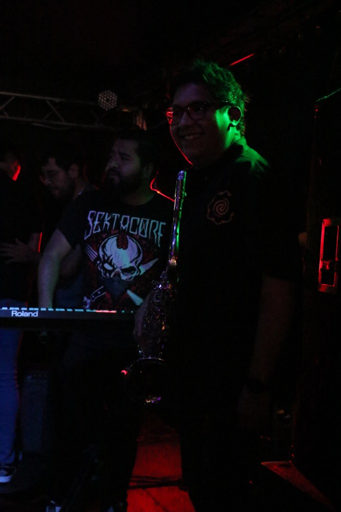 El chillido de un saxofón me alerta. Entonces, de manera incontrolable, cuando Los Revoltosos están en el escenario, dándose la paz, antes de comenzar, me dan ganas de agitar el cuerpo, se mueve, la canción comienza, sale de las bocinas, músicos se acompañan, tocan, interpretan, dan vida a la música, hacen valer el instante, mi cuerpo danza en el desmadre, danza en la irreverencia, danza, mi voz grita, mi ojos miran todo, bailo y huelo, huelo, huelo cuerpo, huelo, apesta, hiede, a sudor, a humores, humano, persona, a pieles, huele a cerveza, a cigarrillo y cannabis, apesta, apesto, huele, una mujer en una esquina, sentada en la oscuridad, la banda tocando, el slam en medio de la pista de baile, luces bajas, muy bajas, luces en mi rostro, olor a humanidad, a sangre, a sangre, me muevo rápido y llego hasta la mujer, muy cerca de ella, me hinco, huele a malvavisco y fresas, a verano entre árboles frutales, se asusta pero mi cuerpo, mi ser, mi voz, mis labios, su piel.
