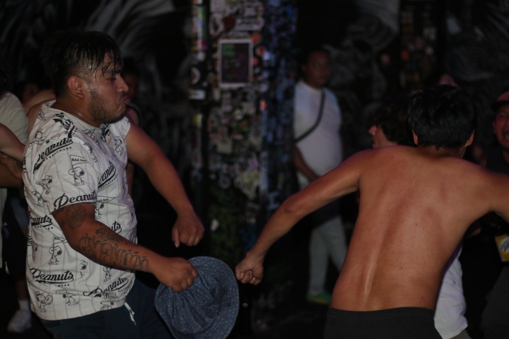 Ya no supe de dónde salió esta repentina sed. Pedí una caguama y la bebí de un trago largo, largo, largo, fría la chela, eructo seguro, pero no, ni así, ni así pude expulsar los males, ni así pude ahuyentar este algo insaciable. Konflicto subió al escenario, las playeras con el logo de la banda aparecieron, las caguamas en las manos de la banda que vino a escuchar el ska, del personal skasero, del prole que domingueó y vino y dijo venga, y se la está pasando chido en esta cueva tapizada de stickers, tags, grafittis, de huellas de las y los que estuvieron aquí, que dejaron pasar su vida, que bailaron, y se aventaron y empujaron los cuerpos, lo hacen ahora, danzan, brincan, se avienta, se suben a las vallas y vuelan, conviven, El Punto Ska está abajo del escenario y también canta, baila, toma. Se agudiza algo en mí, se transforma algo, estoy seguro, no es el lugar, no es la música, skaskaskaskaska, no, soy yo, es mi mente, es mi cuerpo, que yo no es nada mío, nada nada mío, mentiría si lo siento mío, si me obedece, en algo, no, nada, nada, ni siquiera respirar, no tengo registro de cómo lo estoy haciendo, no tengo la menor idea, no la tengo, no soy yo, no me me obedezco, no, no, no.